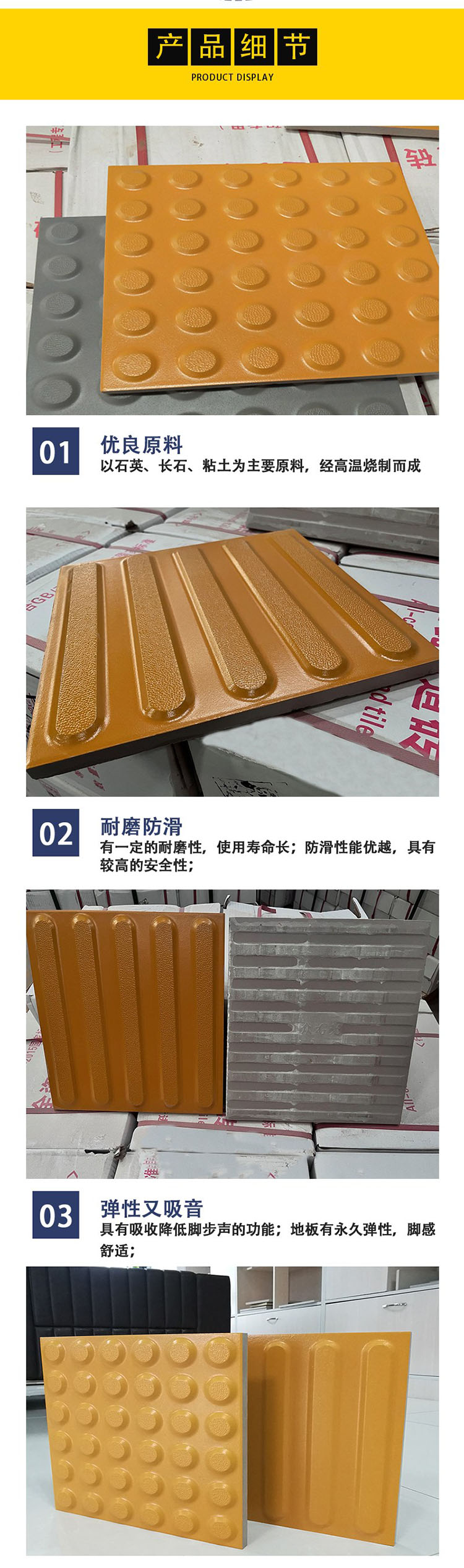 中黃色防護盲道磚